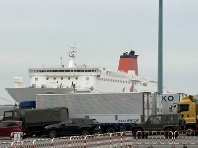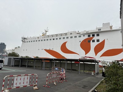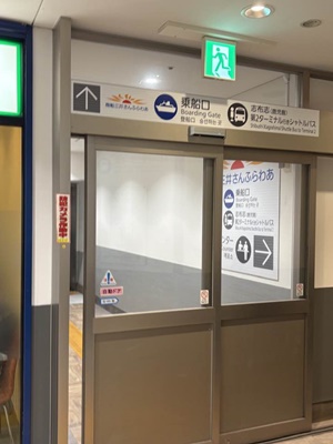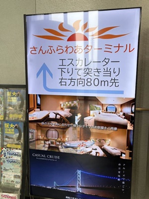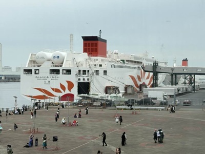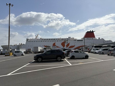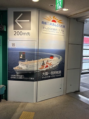 右方向に歩くと別府行きのさんふらわあくれないが見える。つまり第1ターミナルはすぐそこ。