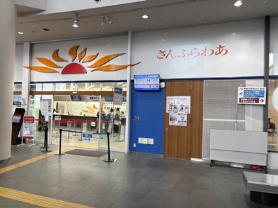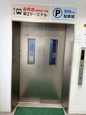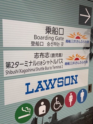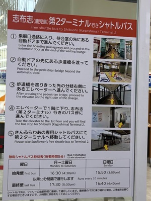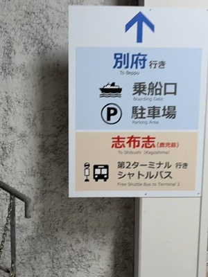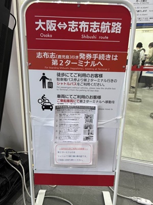 志布志行きの第2ターミナルはここじゃないよ、という看板。