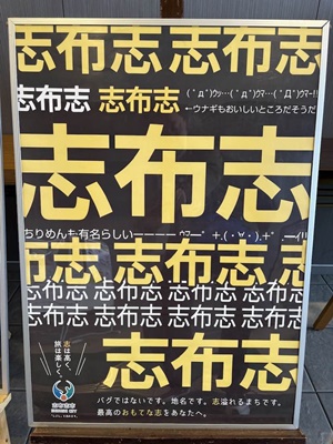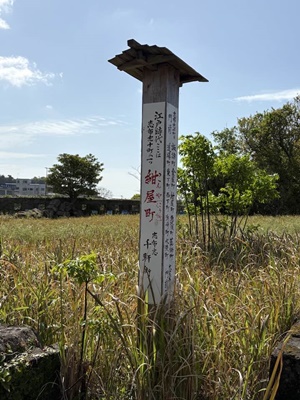 30分ほど歩いて市街地に来ると「志布志麓」の幟が立てられ、「志布志十町」の標柱が。「志布志千軒」とも書いてるから昔は港町として栄えてたんだろうな。今は志布志市全体で人口2万9千人。「志布志十町」とは諏訪町・金屋町・紺屋町・恵比須町・薬師町・道場町・東下町・西下町・浜崎町・水洗町の10。長崎と共通する町名多い。