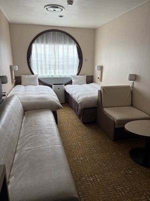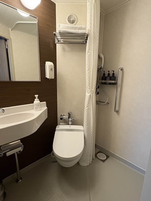 6時にベッドから出て6時半に風呂に。揺れて波立つ風呂はフェリーの醍醐味。50分にレストランが開いたのですぐに入って朝食。