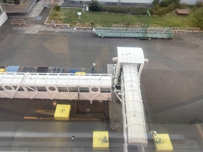 ④エレベーターで1階に降りると第2ターミナル行きシャトルバスのバス停が。16時16分。シャトルバスの1便は16時30分発。最終的には余裕出た。