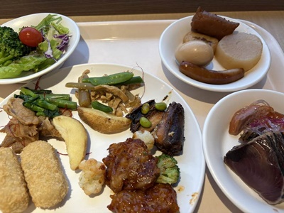 18時から夕食。ビュッフェスタイルで1人2000円。意外に混んでない。