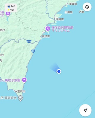 22時37分、室戸岬に接近。酔っぱらったので寝る。