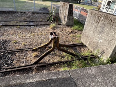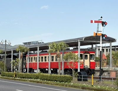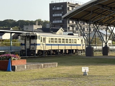 1時間休んで夕食食べに外に。ホテルの目の前に鉄道記念公園。大隅線・志布志線廃線(1987年)前の機関区跡。