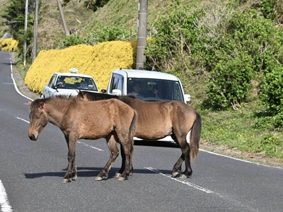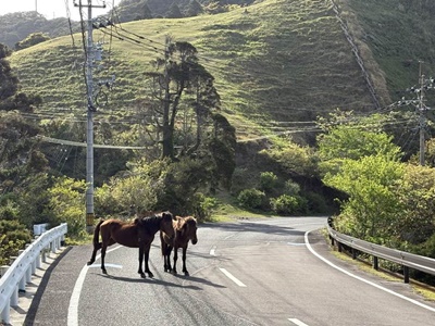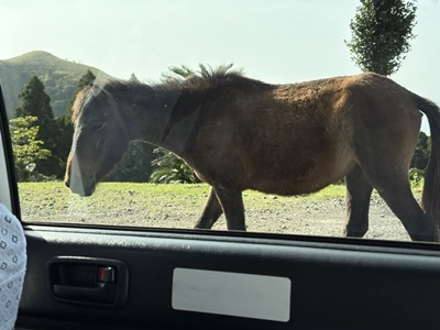 天気がいいので(午後からは悪くなる予報)駅前に停まってたタクシーに乗って都井岬に。馬の方からタクシーに寄ってくる。