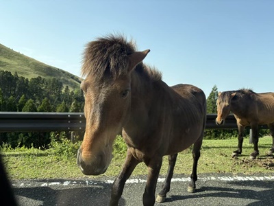 馬が動かない限り車も動けない。クラクションなどもってのほか。