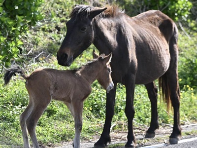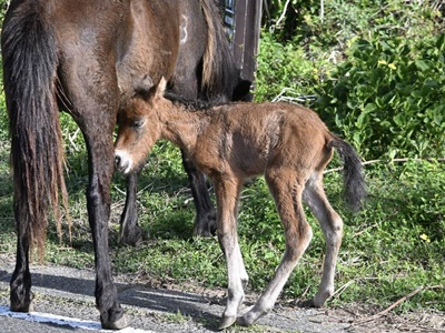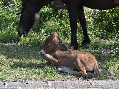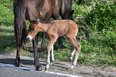 仔馬。監視員の人が「今日生まれた仔馬」と教えてくれる。母親は気が立っているので近づかない方がいいらしい。