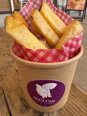 スイートポテトフライ食べる。さらに焼酎3種と、農家の人が持ってきたばかりのホワイトアスパラ購入。道の駅楽しんでるなあ、珍しく。