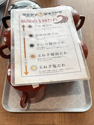 ふじわらのみいが行った「大乃屋」は月曜休みっぽいので、11時に開く道の駅のレストランでぶりプリ丼ぶり食べる。5種類のたれがまず出てくる。