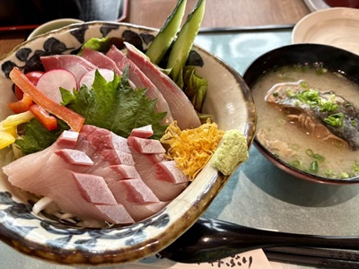 ぶりプリ丼ぶり。あら汁が美味すぎた。
