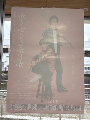 駅の待合室に入ると外は土砂降り。すぐやんだけど。ここにも「かくかくしかじか」のポスター。裏から見るとこう・・・ん?