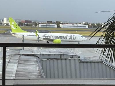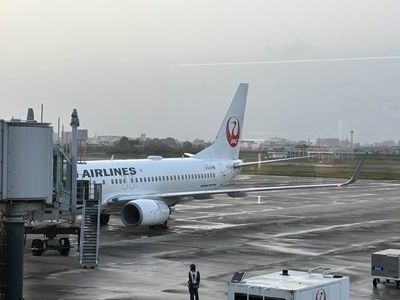 13時21分搭乗。しかし滑走路混雑で44分くらいまで動かず。