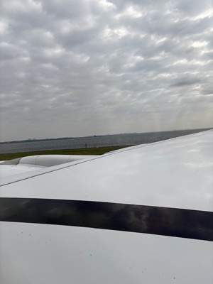 20時過ぎには保安検査通過し、55分搭乗。21時10分に動き出す。20分離陸。