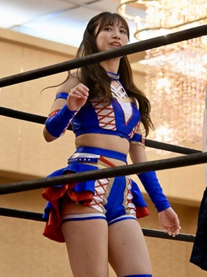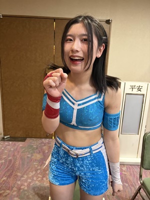 この後すぐ帰京して明日のLUCHA FESTAに出場することになった長谷川美子。
