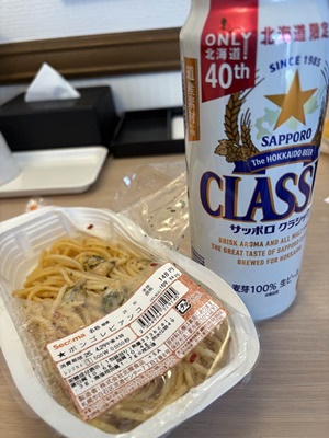 15時過ぎ、さっぽろに戻り、セイコーマートでパスタとクラシック買って東横イン北大前にチェックイン。飯食って一本飲んで昼寝。