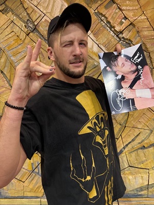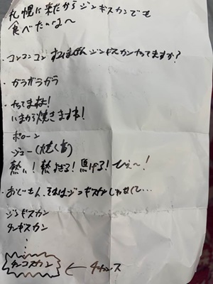 試合後のサイン会はまず正田。アントンからのLINEをチラシの裏に転記したそうだ。