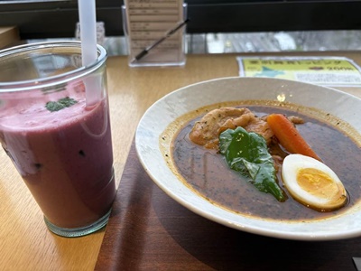チキンのスープカレーとハスカップのラッシーセット2000円。食べ終えて地下1階の六花亭に。バラでも買えたのでいろいろ買う。