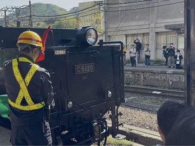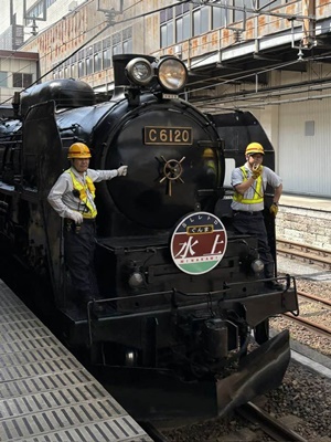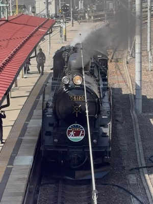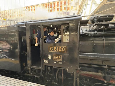 35分に入線。C6120は1949年製造、伊勢崎の公園で静態保存されていたそうだ。