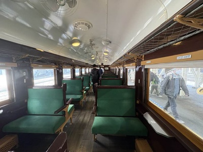 自分が乗る5号車はオハ47。スハフ42型の台車を交換して軽量化したものだそうだ。