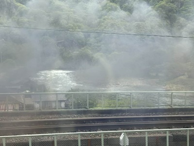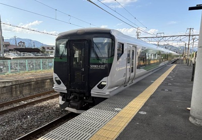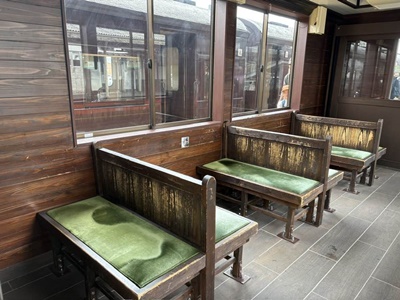 10時35分、渋川駅に到着。20分くらい停車するとのこと。トイレタイム。客車にもトイレあるが、昔ながらの(洋式だからそんなに昔でもないか)青い水が流れる奴だった。