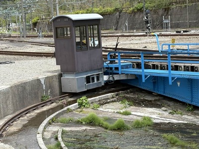 円形のレールの上をこの運転台が走り、転車台を回す。