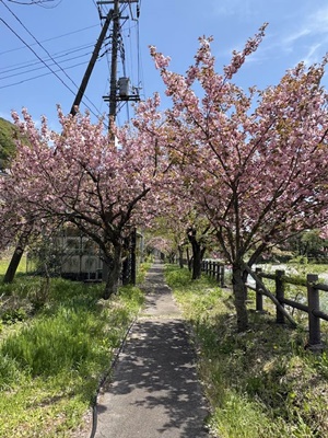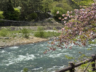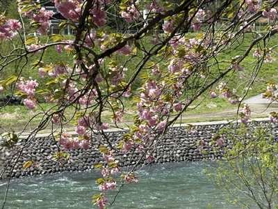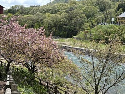帰りのSLぐんま水上号の出発は15時過ぎなので、温泉街に向かって利根川沿いを歩く。八重桜が満開だった。