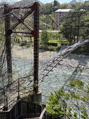 この吊り橋はかつては渡れたんだろうが今や廃道。直す金もないんだろうなあ。