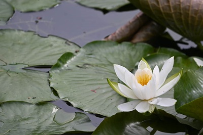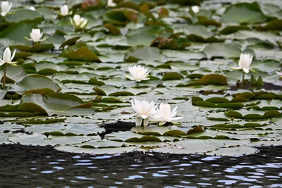 涵翠池の白いスイレン。