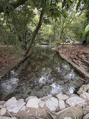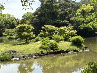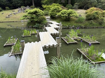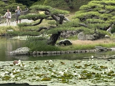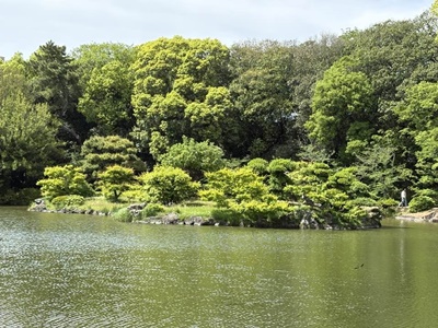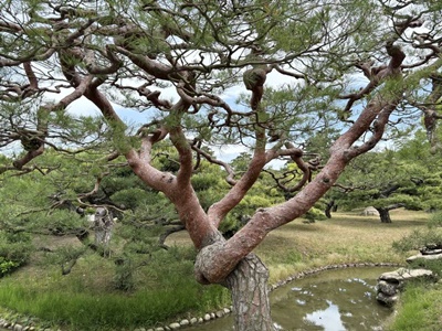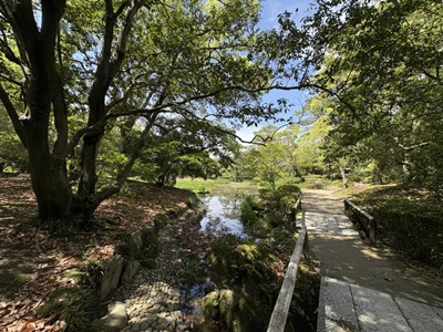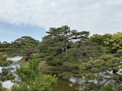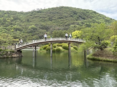 渓流みたいな細工もされていた。堪能したなあ。これでなんで「日本三名園」に入ってないのだろう?1910年(明治43年)に文部省から発行された『高等小学読本』巻一には、「・・・我ガ国ニテ風致ノ美ヲ以テ世ニ聞エタルハ、水戸ノ偕楽園、金沢ノ兼六園、岡山ノ後楽園ニシテ、之ヲ日本ノ三公園ト称ス。然レドモ高松ノ栗林公園ハ木石ノ雅趣却ツテ批ノ三公園ニ優レリ」とあり、高松市の栗林公園は日本三名園より優れていると記載されていたそうだが。