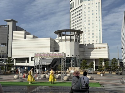 高松駅前ではフラダンスが行われていた。