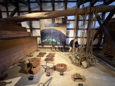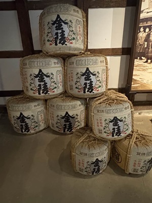 博物館「金陵の郷」に。酒飲めない中学生が修学旅行でたくさん来てたが面白いのかなあ?金陵の社印。