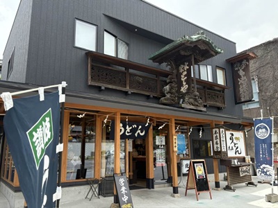 空港内のレストランは大したものがないのでうどん屋「さぬき麺業」に。ラストオーダー19時なので急いで入り、今回ここまで食べてない釜玉に。
