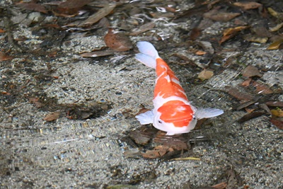 群れずに一匹だけ舟蔵跡を泳ぐ赤ヘル鯉。