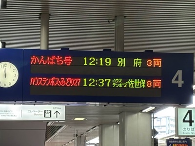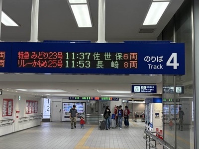 11時30分に4番ホームに。佐世保行きのみどり(885系)が停車中。