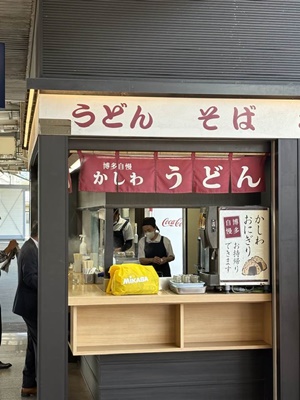 ホームにもうどん屋。こちらは小倉発祥のかしわうどん系。
