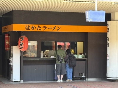 向こうのホームにはラーメン屋。とんこつの匂いがこっちまで漂ってくる。