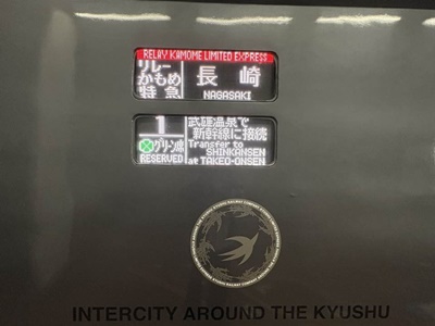 18時12分に武雄温泉駅に着いてリレーかもめに乗り換え。今度は元かもめの885系だった。