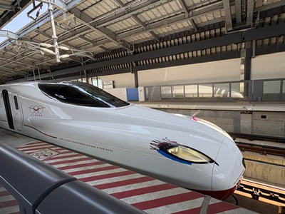 12時52分武雄温泉駅到着。向かいのホームには西九州新幹線かもめ25号が待機。つけまかもめだ!期間限定じゃなくなったのかな?