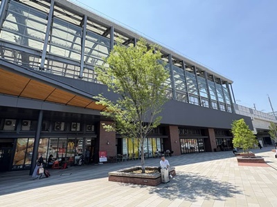 駅前はまだ開発途上。スタジアムと体育館はあるけど。