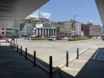 13時24分長崎着。向こうに見えるのは何だろう?