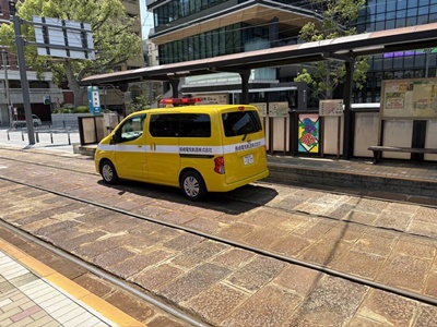 えっ車が専用軌道に?と思ったら長崎電気軌道の社用車だった。
