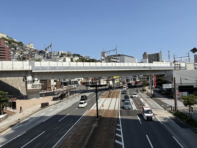 長崎電軌の長崎駅前電停に。
