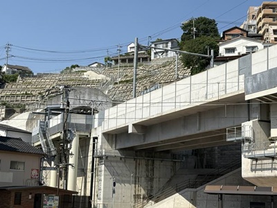 スタジアムシティサウス(旧・宝町)下車。あ、ここで西九州新幹線と国道が交差してるのか。
