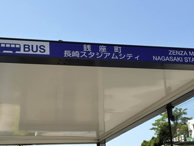 バス停は従来の銭座町と長崎スタジアムシティを併記。