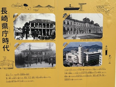 長崎県庁時代。3代目庁舎が東京駅にも似てて(辰野金吾の弟子筋が設計)カッコよかったみたいだが原爆で炎上、4代目は近代的な面白みのないコンクリートビルに。