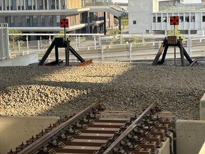 ホームに上がる。車止め。