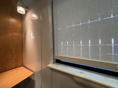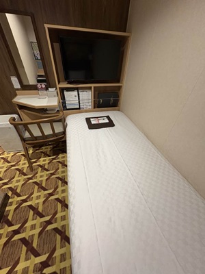 QRコードで開錠(こないだ覚えたので今日はスムーズ)して部屋に。窓がないのが残念だが、まあこんなもんだろう。