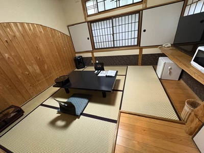 部屋は変わり映えなく。明日以降が贅沢だからこれでよい。
