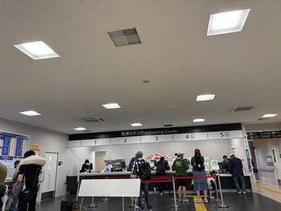 発券カウンター。自分はメールでQRコード来てるから手続き不要。