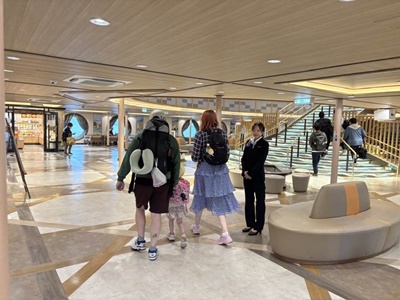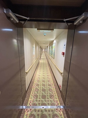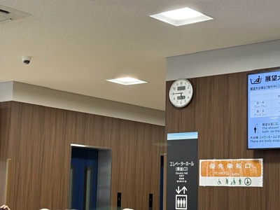 17時45分に乗船開始。エレベーターでターミナルの2階に。